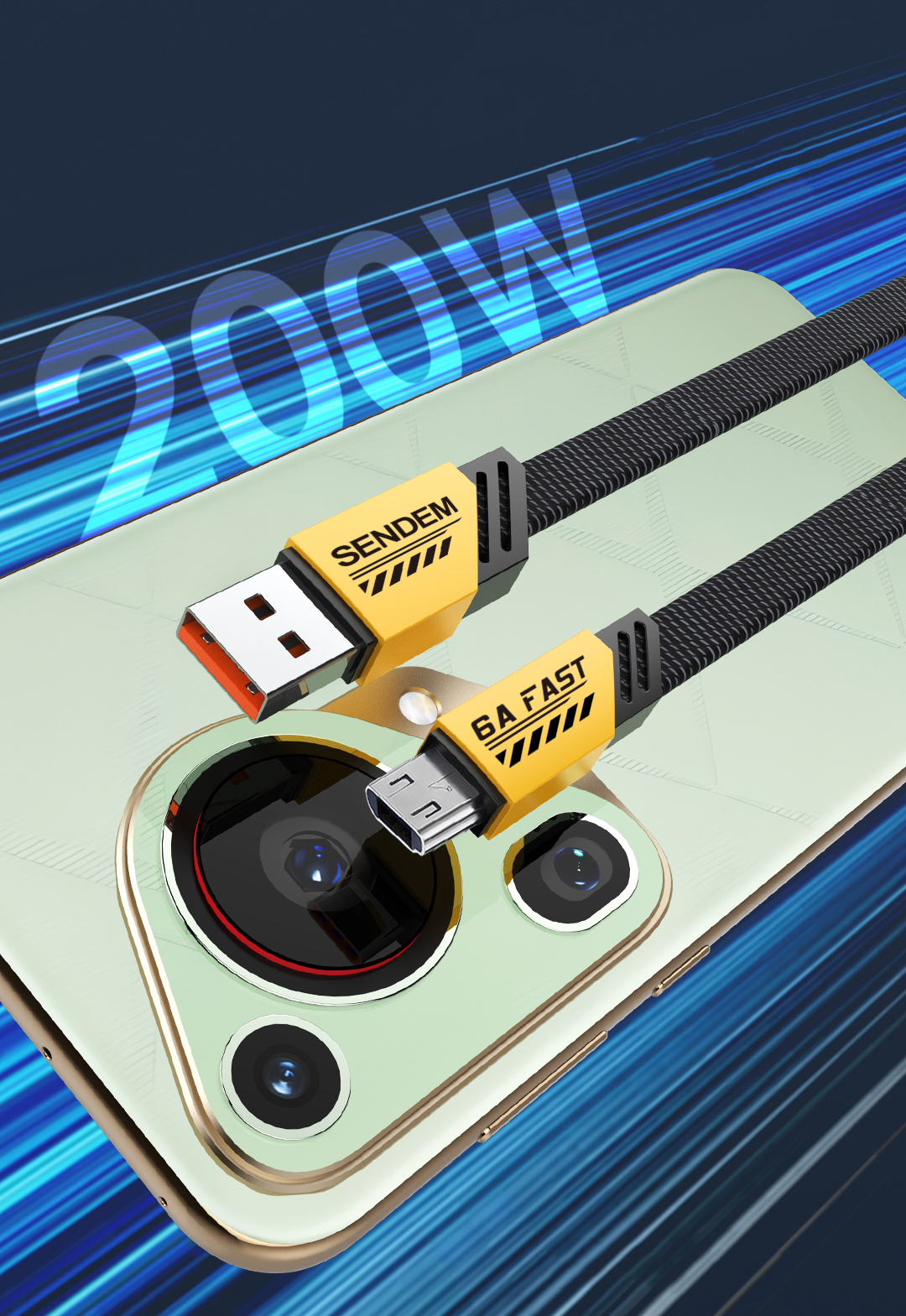 - USB/MICRO USB cable 5A, 200W