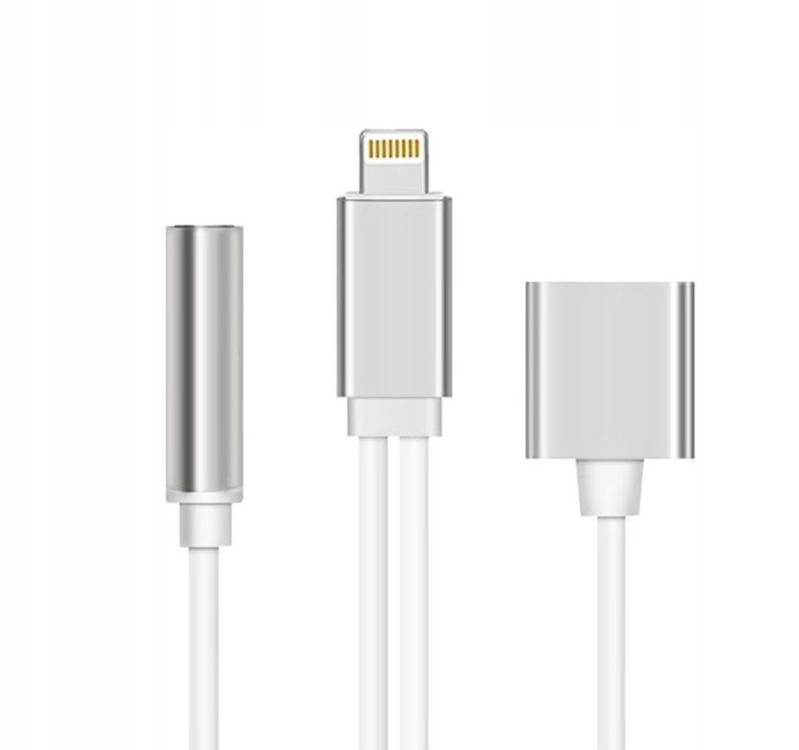 - Umożliwia jednoczesne podłączenie ładowarki lightning i zestawu słuchawkowego z wejściem 3,5mm