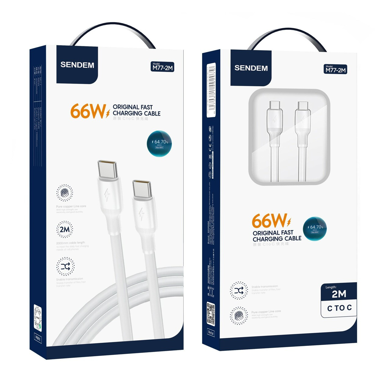 SENDEM M77 TYPE C/TYPE C 66W 2M white